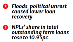 The central bank, however, expects that the amount of NPLs in the agriculture sector would decline in the coming months following the Boro harvest.