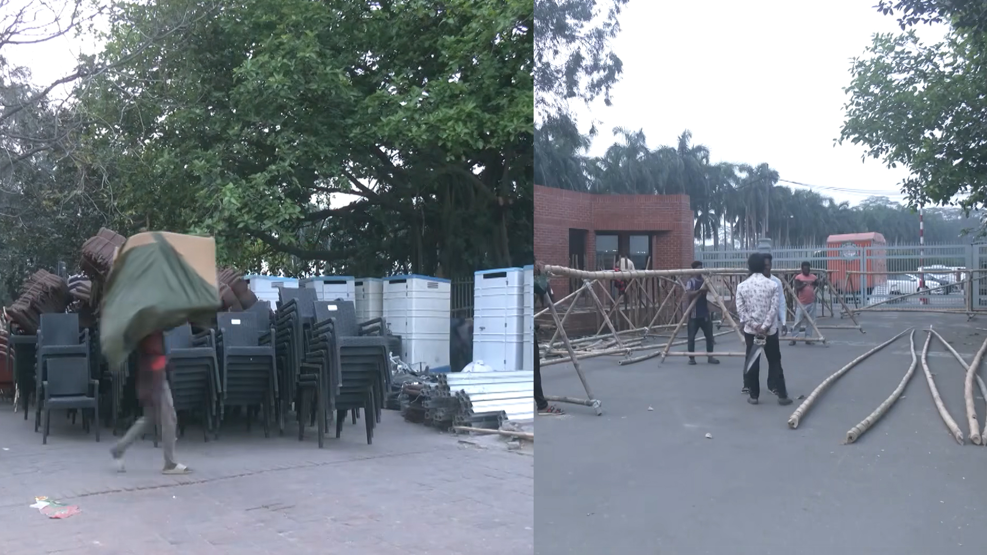 Preparations for the stage began on Thursday afternoon at Manik Mia Avenue in Dhaka with the final touches were still going on Friday morning.