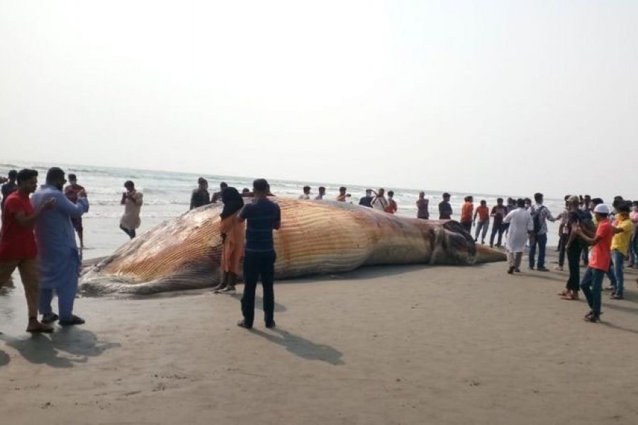 The locals first spotted the dead whale floating in the sea at the Himchhari point and informed the Department of Forest and the Department of Environment about it.