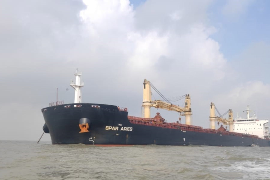 MV SPAR ARIES, carrying 60,802 tonnes of wheat, docked at the outer anchorage of the country's premier seaport on Monday, said a statement of the Ministry of Food.