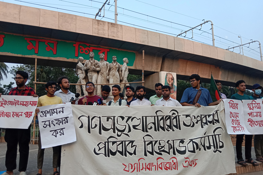 A platform named the ‘Anti Fascist Coalition’ held a protest rally on Monday afternoon in front of the Anti-Terrorism Raju Memorial Sculpture at Dhaka University, demanding sweeping reforms and accountability for alleged abuses by the government and law enforcement agencies.