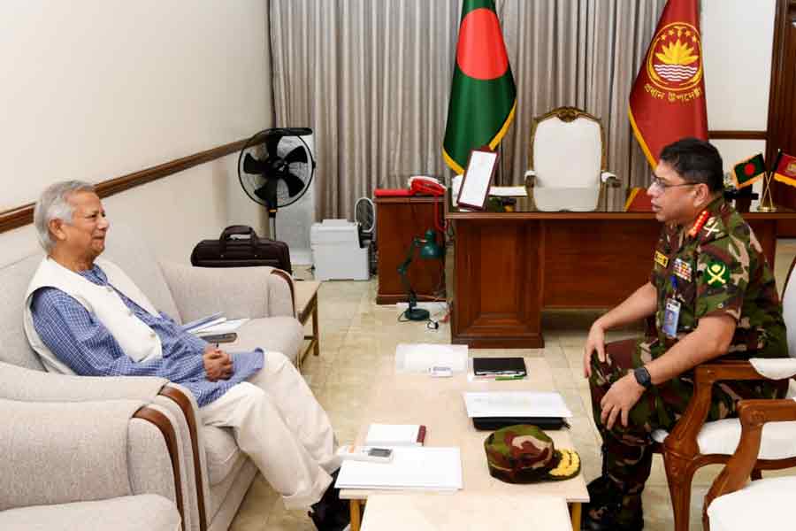 Chief of Army Staff General Waker-Uz-Zaman called on Chief Adviser Professor Muhammad Yunus at the State Guest House Jamuna on Saturday.