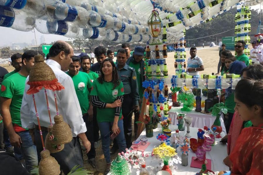 BD Clean, a voluntary organisation, collected the plastic bottle as waste and exhibited them at TNT playground at the city’s Banani area.