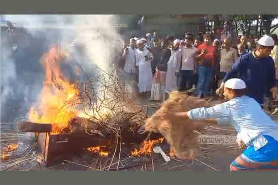 The incident occurred on Friday afternoon in Ward No. 5 of Goalanda Municipality. Nurul’s body was dug up from his grave and set on fire by the “Tawhidi Janata”.