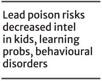 Lead poison increases the risk of decreased intelligence in children, learning problems and behavioural disorders.