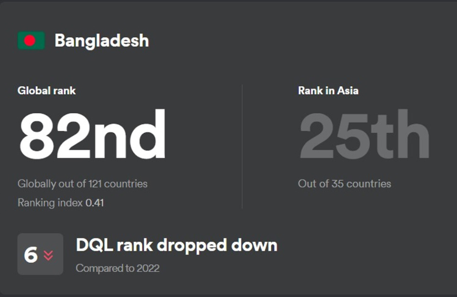 Bangladesh has dropped six places on Surfshark's annual Digital Quality of Life (DQL) Index since last year.