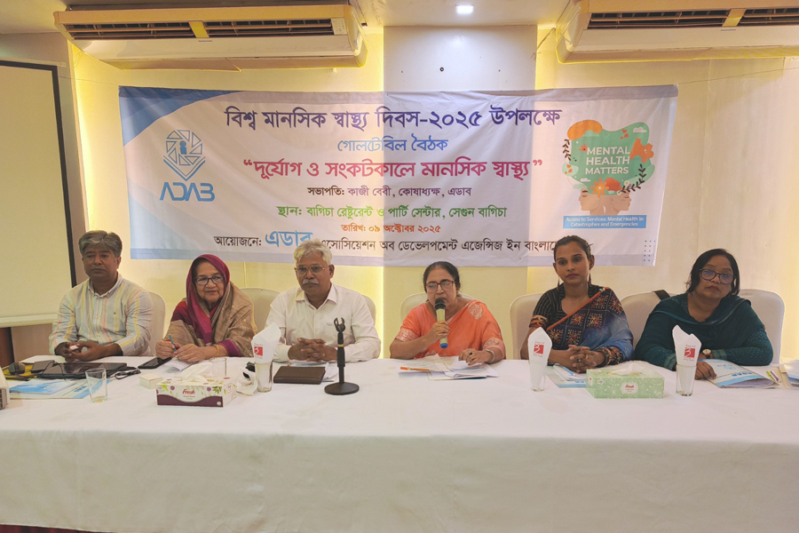 The event, titled “Mental Health in Catastrophes and Emergencies,” was organised by the Association of Development Agencies in Bangladesh (ADAB).