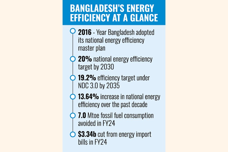 The analysis suggests Bangladesh is on course to meet its 2030 energy efficiency target a year ahead of schedule, with households and industry - together accounting for roughly two-thirds of total energy use - identified as priority sectors for further gains.