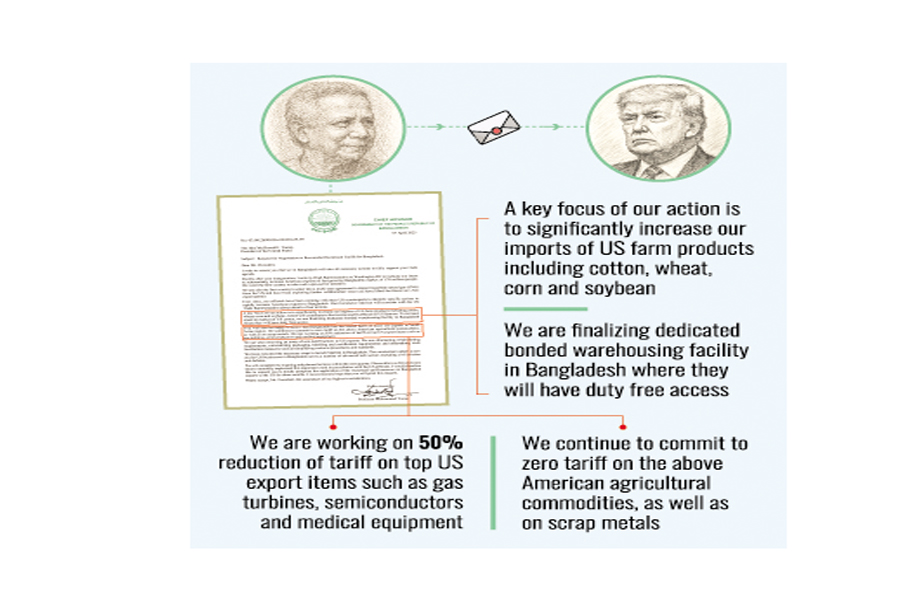 On its part, the commerce ministry Monday sent a letter to the United States Trade Representative (USTR), signed by Commerce Adviser Sk. Bashir Uddin, outlining Bangladesh's trade action plans and commitments in greater detail.