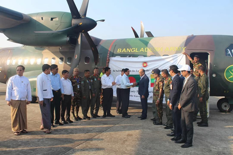 Earlier on Sunday, Bangladesh sent its first mission of urgent relief materials, including medicines, tents, dry food, and medical teams, to Myanmar through the Bangladesh Armed Forces, led by the Bangladesh Army.