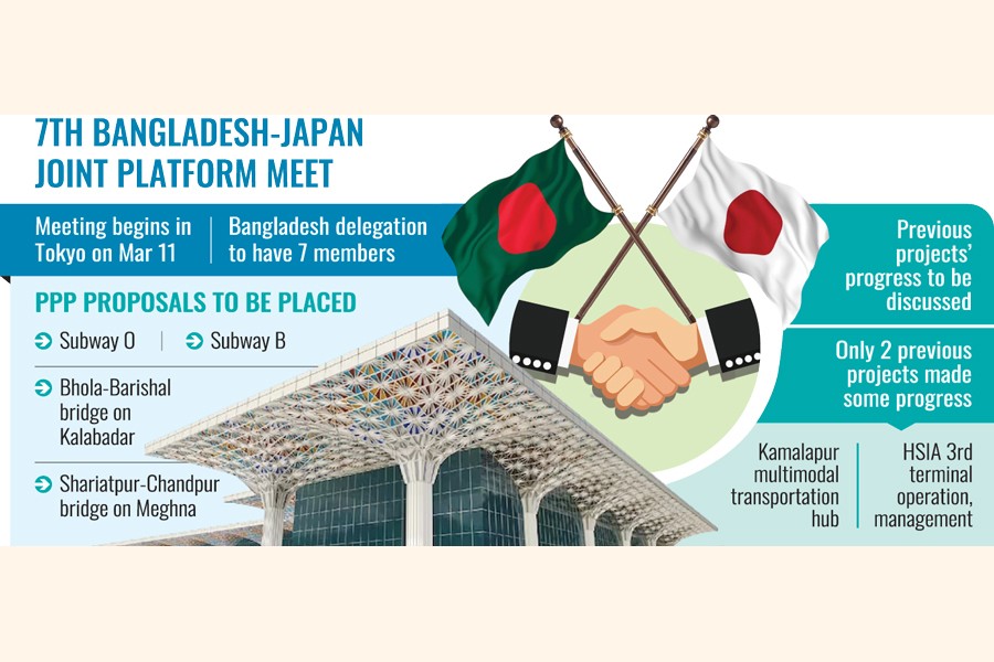 Bangladesh will place four project proposals - two on subways and another two on bridges - to Japanese investors under the public-private partnership (PPP) arrangements as the next joint-platform meeting is set to begin in Tokyo on March 11.