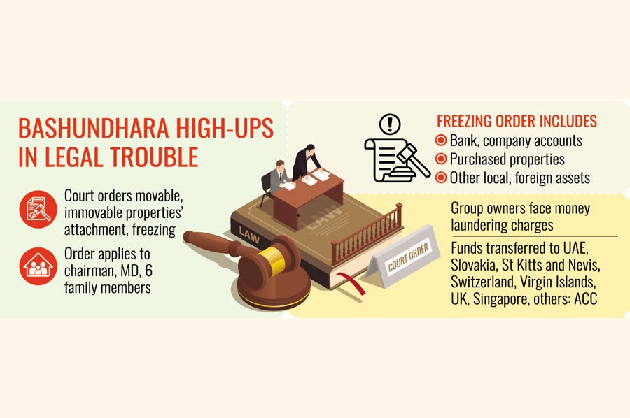 A Dhaka court has ordered attachment of all movable and immovable foreign assets belonging to the Bashundhara Group Chairman and the Managing Director and their family members on charges of money laundering, officials said.