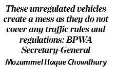 "The government has to be strategic in controlling them - authorities should provide them with registration and driving licenses. But before it, we have to determine the technical specification and regulations," Prof Hadiuzzaman suggested. Political rhetoric will not help improve the situation otherwise, he commented.