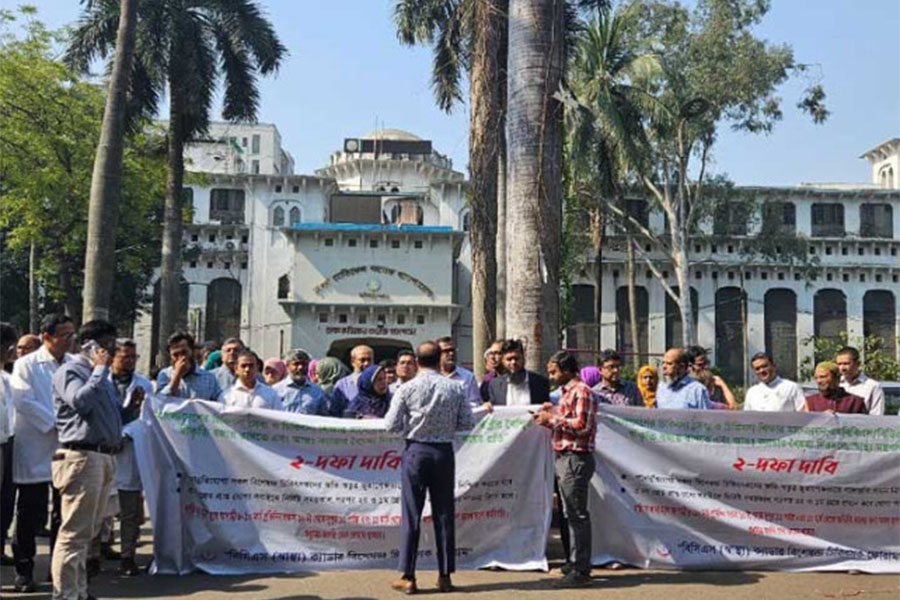 On Saturday, the doctors began demonstrating outside the director’s office at Dhaka Medical College Hospital (DMCH) as part of their protest, which involved a two-hour work abstention daily from 10:00 am to 12:00 pm until Monday.