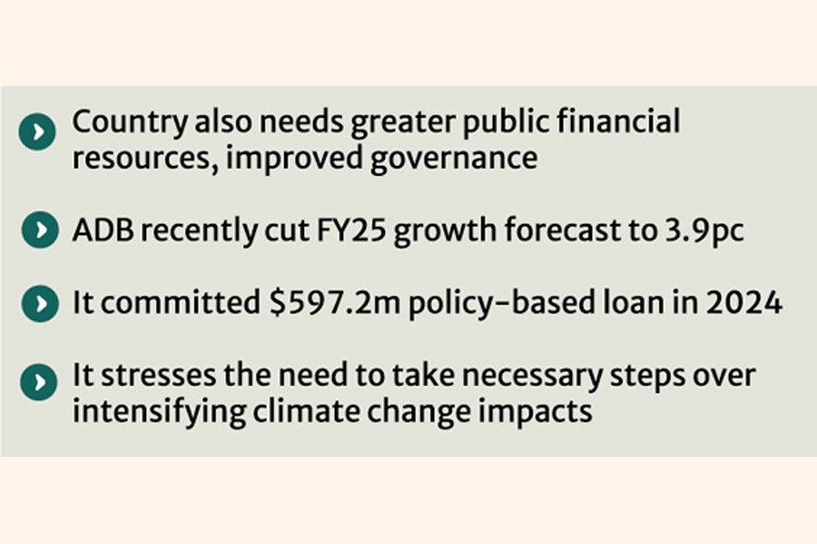 Mentioning that ADB provided holistic support to Bangladesh, the report said the development bank committed a $597.2 million policy-based loan to help boost domestic resource mobilisation and enhance the country's business environment in 2024.