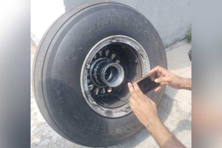 The flight of the state-owned airline on Friday last landed safely at Hazrat Shahjalal International Airport (HSIA) in Dhaka despite losing a wheel from its main landing gear shortly after take-off from Cox's Bazar.