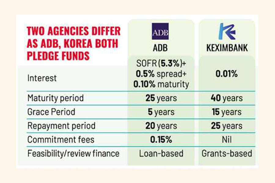 Total incidence of ADB interest comes to 5.9 per cent inclusive of SOFR (5.3 pc), 0.5-percent spread and 0.10-percent maturity rate. The Korean interest rate is only 0.01 per cent.