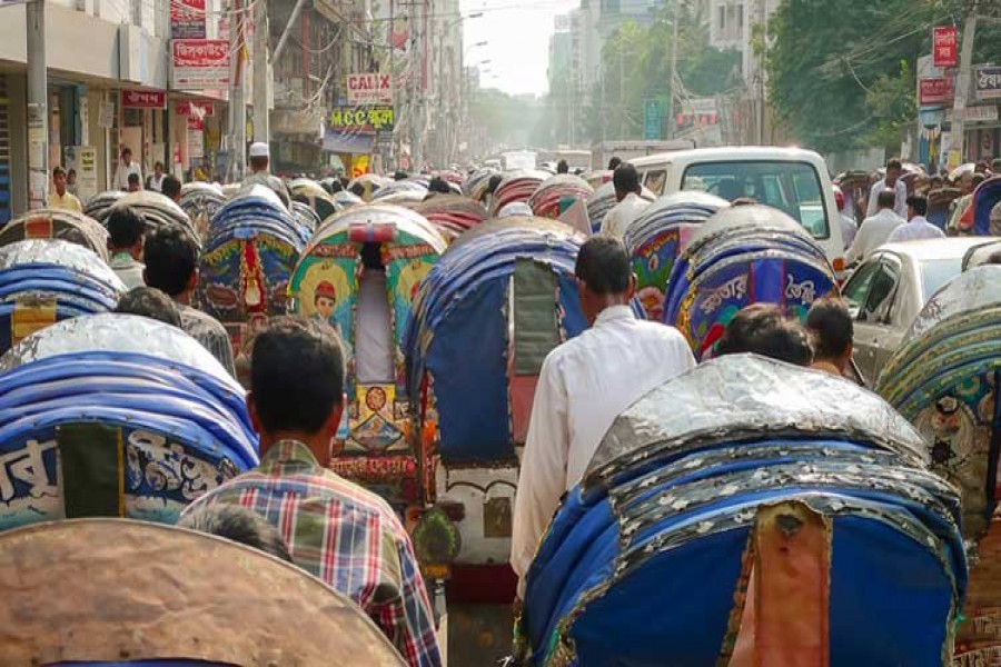 Dhaka's two city corporations banned rickshaw on July 07 from Gabtoli to Azimpur via Asad Gate, Kuril to Sayedabad via Rampura and Khilgaon, and Science Lab to Shahbagh.