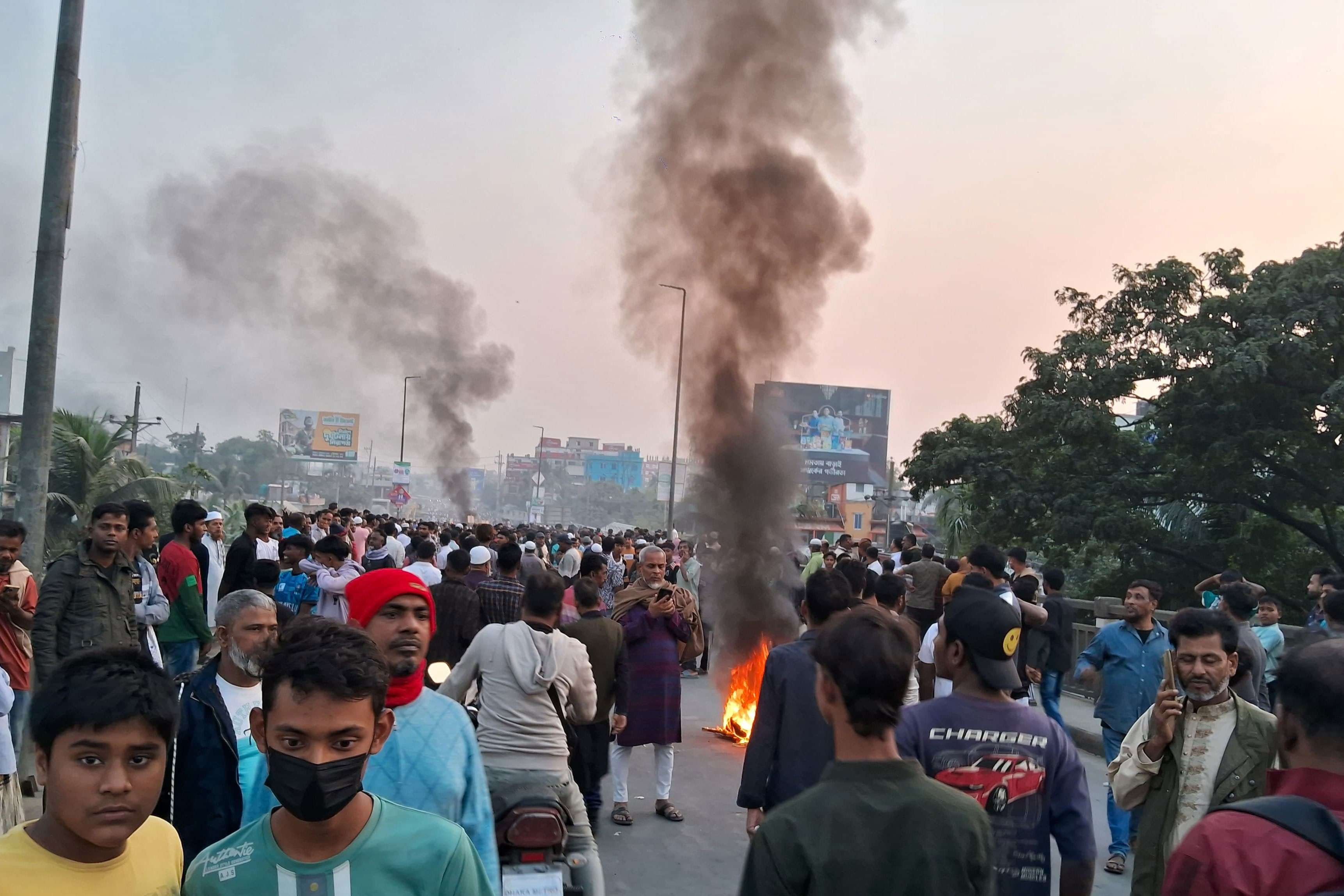 From around 3:30pm, demonstrators set fire to tires and staged a sit-in on the bridge, chanting slogans against the nomination. Traffic on the Mukterpur Bridge came to a complete halt, forcing passengers to cross on foot. Long tailbacks formed on both sides, with ambulances facing severe difficulties.