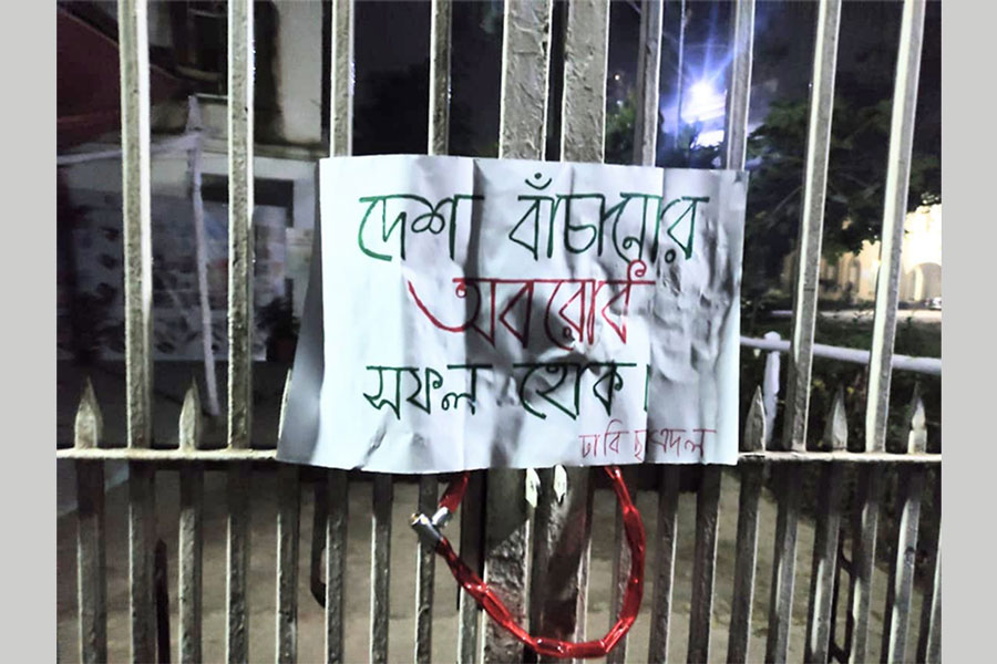 The activists of Jatiyatabadi Chhatra Dal, student wing of BNP, put locks on nine gates of different institutes and faculties of Dhaka University to support the 48-hour blockade called by its mother organisation and like-minded parties.