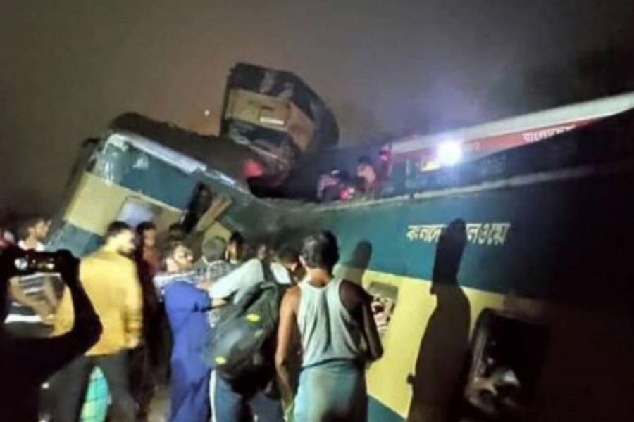 The deadly collision between Dhaka-bound Turnanishita from Chattogram and Chattogram-bound Udayan Express from Sylhet took place around 3:00am, said Deputy Commissioner Hayat-Ud-Dowllah Khan, who visited the spot right after the crash.
