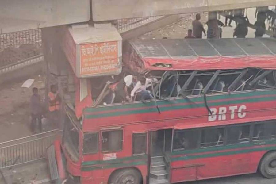 BRTC double-decker crashes into Farmgate pillar, leaves 1 injured