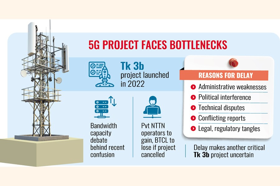 The Bangladesh Telecommunications Company Limited's (BTCL) long-planned 5G Readiness Project remains stalled three years after its initiation, mired in controversy, bureaucratic inertia, and allegations of irregularities.