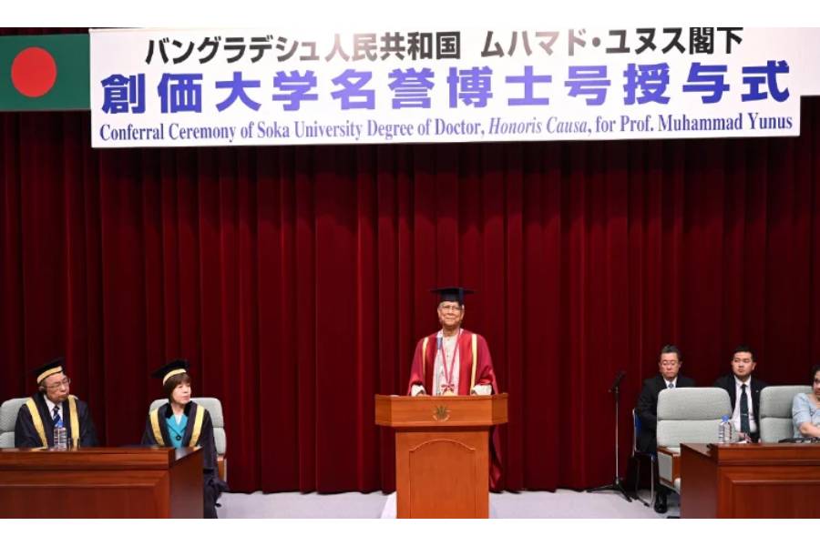 Prof. Yunus also received an honorary doctorate degree from Soka University on the occasion.