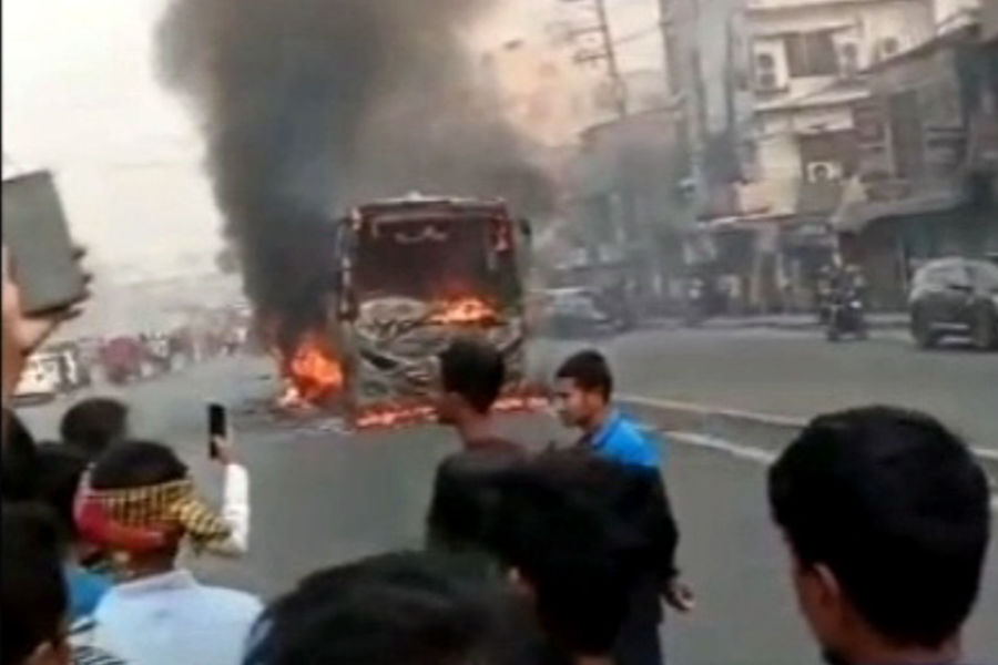 Hiron Mia, Station Officer of Bhogra Modern Fire Service, said the Dhaka-bound bus was travelling from Tangail when it reached the Board Bazar area at around 7:45am and collided head-on with a motorcycle, reports UNB.