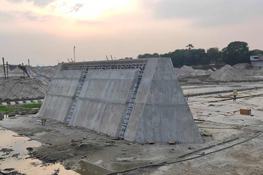 Dockyard and Engineering Works Limited, a commercial entity being operated by Bangladesh Navy, is constructing the dam 500 yards downstream of Birshrestha Captain Mohiuddin Jahangir Bridge at Chapainawabganj town.