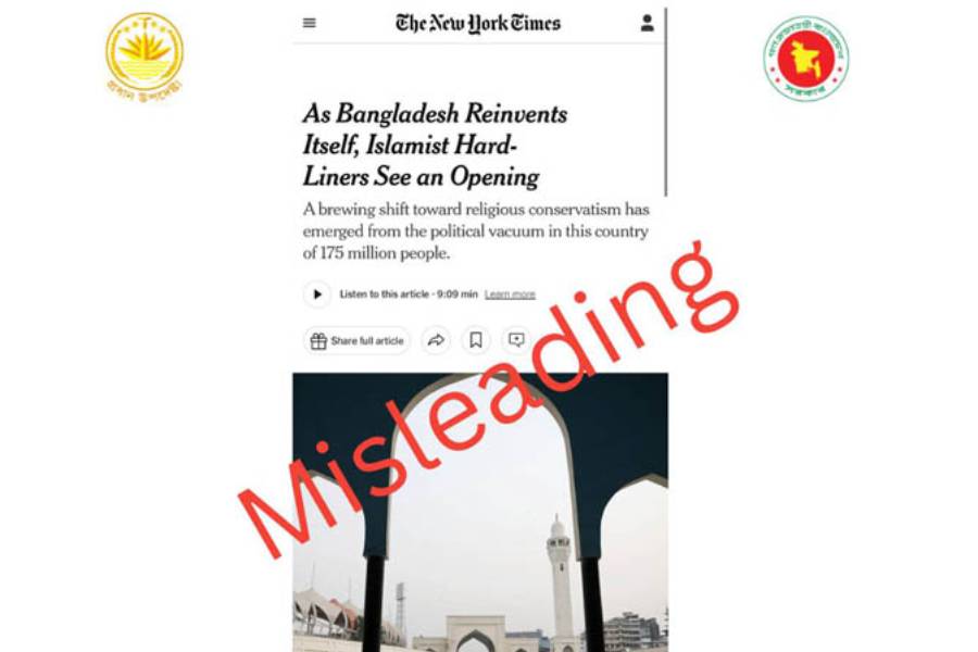 The New York Times article titled “As Bangladesh Reinvents Itself, Islamist Hard-Liners See an Opening” is a misleading one, said the Chief Adviser’s Press Wing on Tuesday.