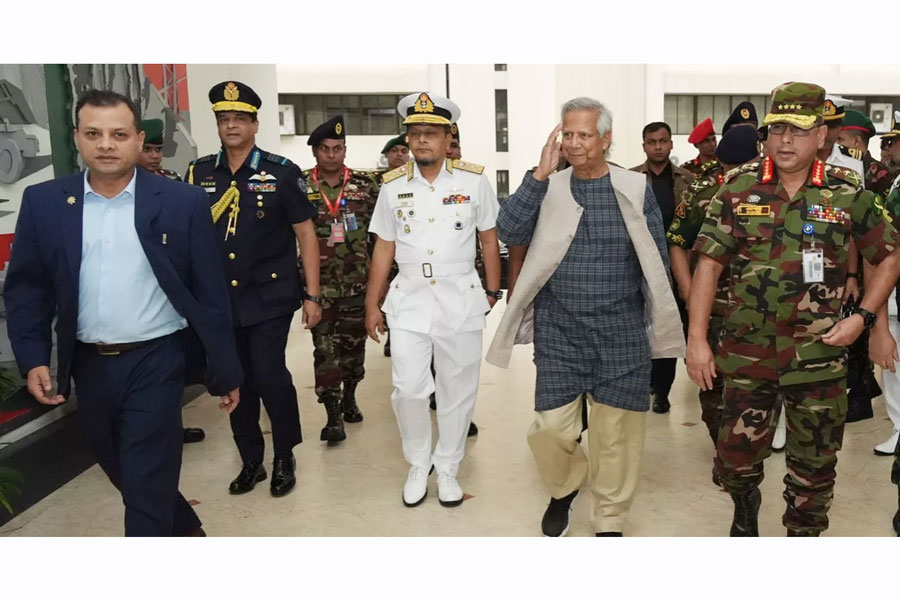 Chief Advisor to the Interim Government Prof Muhammad Yunus on Sunday visited the army headquarters for the first time where he was briefed on important issues of national security.