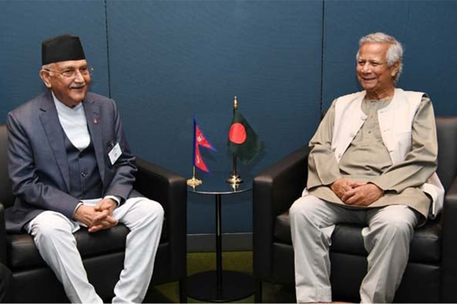"Delighted to meet with Chief Adviser Prof Dr Muhammad Yunus. Discussed Nepal-Bangladesh relations, focusing on energy and transit cooperation, tourism, cultural exchanges, educational ties, and cooperation in regional/multilateral forums," Nepal’s prime minister said.