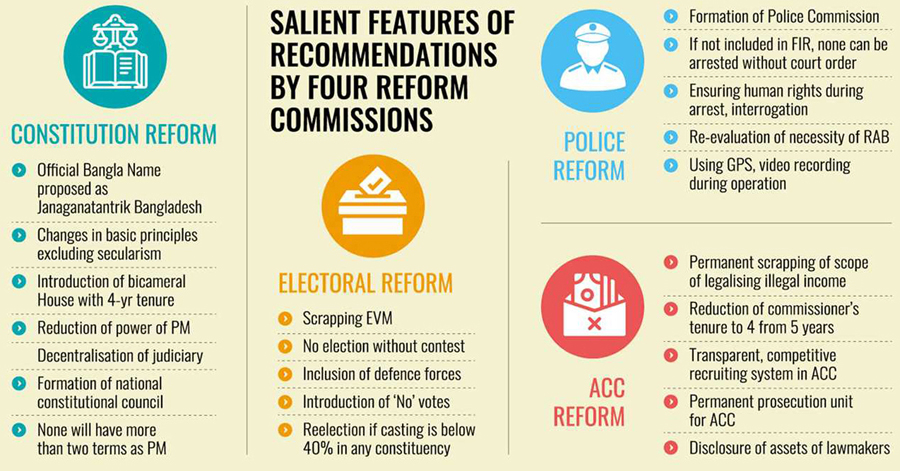 The reform commission on constitutional reform has also proposed reintroducing interim government to hold general election in the post-uprising Bangladesh.