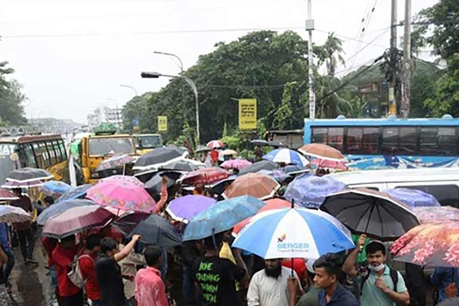 As private cars and motorcycles, rickshaws and freight transports are allowed, huge tailbacks were created in the port city after the protesters blocked the streets in the Tiger Pass area for three hours to 10 am on Wednesday, reports bdnews24.com.