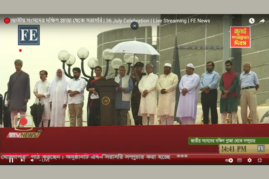 Chief Adviser Professor Muhammad Yunus has read out the July Declaration, marking the first anniversary of the July Uprising.