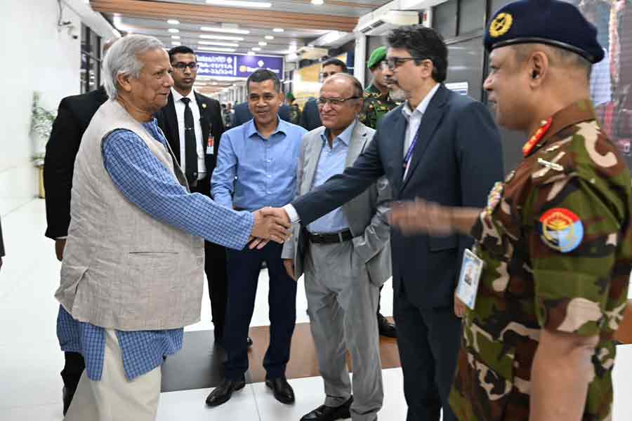A commercial flight of Air China carrying the chief adviser and his entourage landed at Hazrat Shahjalal International Airport in Dhaka at about 8:10 pm (Bangladesh standard time).