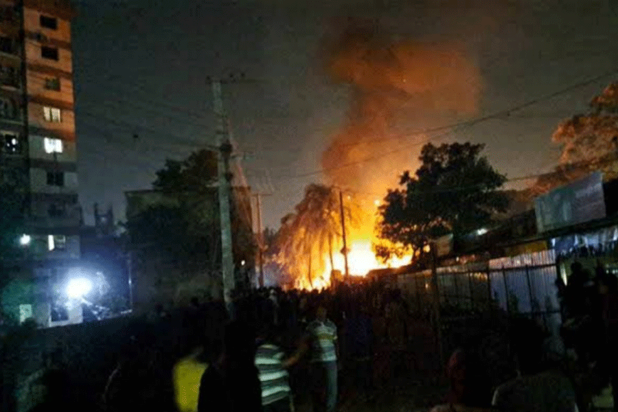 Udayan Chakma, station officer of Agrabad Fire Service, said the fire broke out at the slum around 9:30 pm and engulfed it soon.