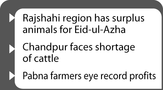 Our Correspondent from Chandpur says, there are as many as 61,486 sacrificial animals in 3,269 farms in Chandpur district although there is a serious demand for about 80,000 sacrificial animals/ heads of cattle all over the district.