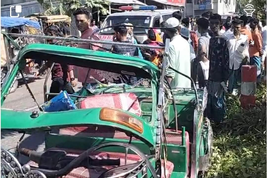 The accident occurred when a Sonpur-bound CNG-run auto rickshaw collided head-on with a truck coming from opposite direction in the area around 11:45 am this morning, leaving Sharmin dead on the spot and three passengers of the CNG injured, said Aminul Islam, Sub-Inspector (SI) of Char Jabbar Police Station.