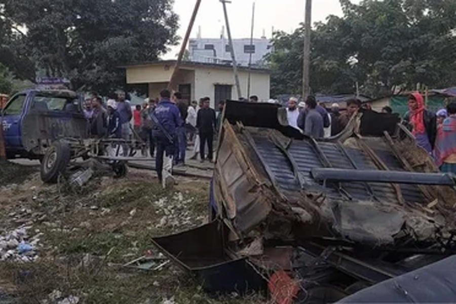 OC Kabir said that a Dewanganj-bound local train (No. 255) from Mymensingh collided with a patrolling police pickup van in the morning. The vehicle was completely wrecked in the collision.