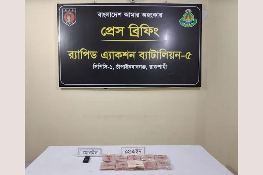 Members of Rapid Action Battalion (RAB) arrested an alleged drug peddler with 1.134 kg heroin from Chapainawabganj Sadar upazila on Thursday. The arrested person was identified as Md. Rabiul Islam alias Rubel alias Rajab, 40, of Ajaipur under Chapainawabganj Sadar upazila.