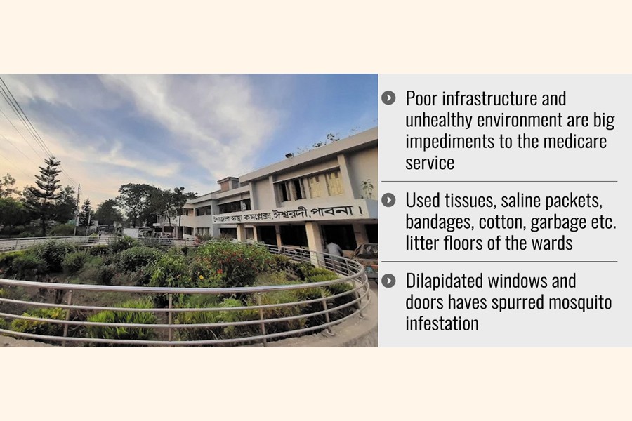 Proper healthcare service is being hampered at the Ishwardi Upazila Health Complex in the district's Ishwardi upazila due to poor infrastructure and unhealthy environment stemming from lack of supervision and renovation by the authorities.