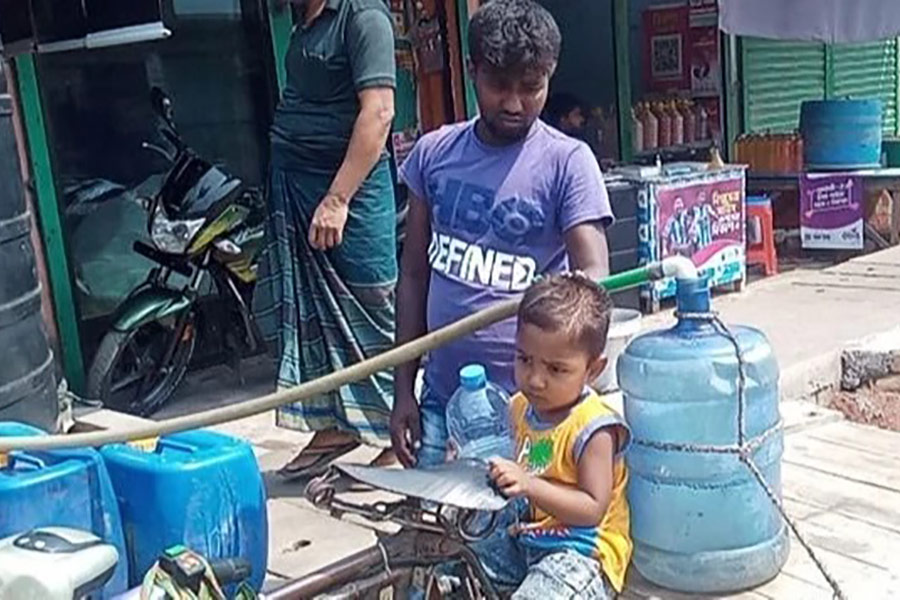 Long queues have become a common sight at shops selling purified open water, while some people are resorting to collecting water from distant sources, according to UNB.