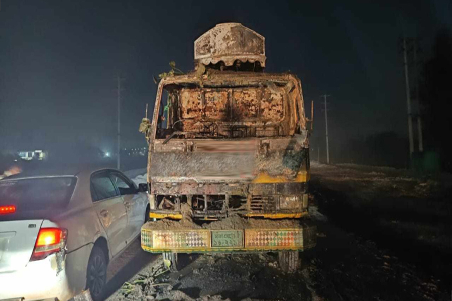 According to Sheikh Billal Hossain, additional superintendent of police in Narayanganj, miscreants hurled a petrol bomb at the truck at Singlabo area. Police are working to identify the arsonist, said he.