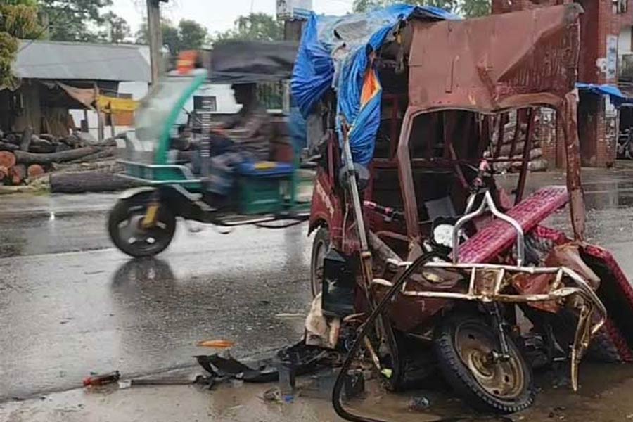 A truck headed from Dhaka to Jamalpur rammed the passenger-carrying three-wheeler on the Jamalpur-Tangail road in the morning, OC Faysal said.