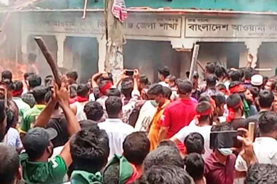 The attackers then vandalised and set the district Awami League office on fire. A few motorcycles kept in front of the office premises were also torched.