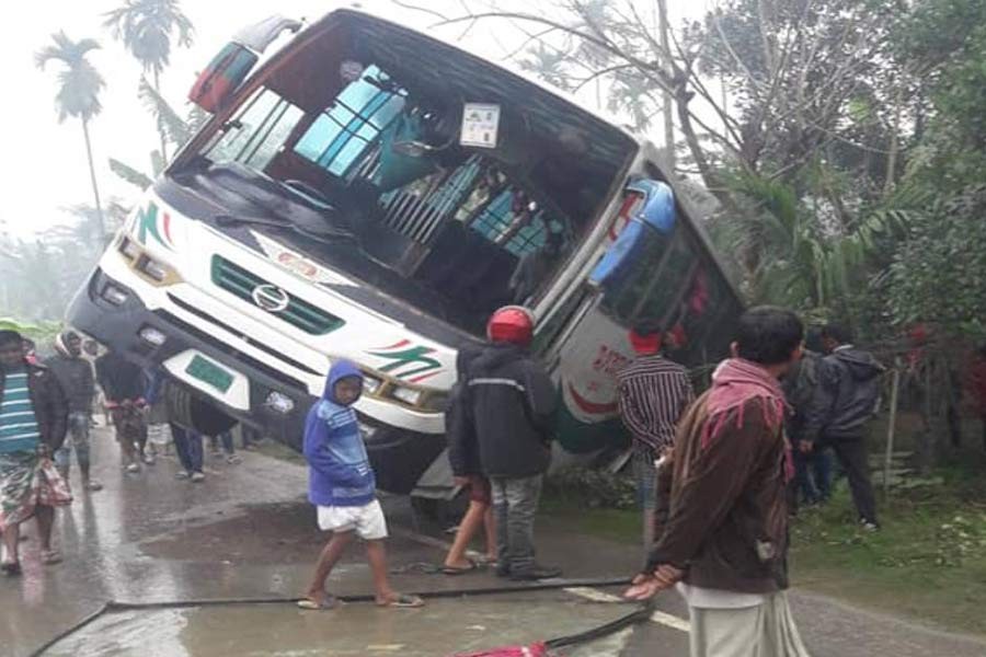 Later, another Dhaka-bound bus collided head-on with an oil laden tank lorry injuring 10 more people at the same spot and plunged into the roadside ditch around 10:15 am.