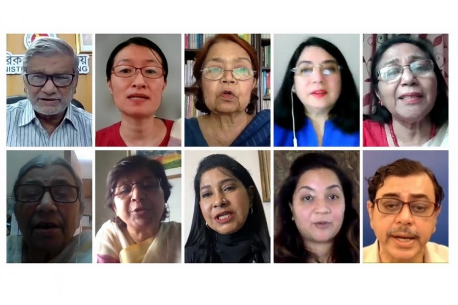 Shaheen Anam, Executive Director, Manusher Jonno Foundation; Kaniz Almas, CEO & Managing Director, Persona; Dr Fauzia Moslem, President, Bangladesh Mahila Parishad and Vidiya Amrit Khan, Director, Desh Group of Companies joined the virtual dialogue and delivered their remarks as distinguished discussants.