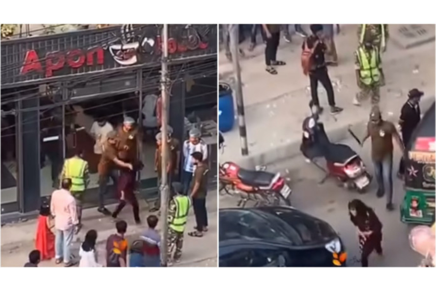 A video that went viral on social media shows the accused assaulting a young woman in front of Apon Coffee House in Taltola area of Khilgaon.
